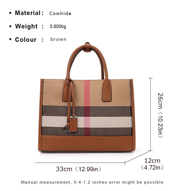 Aidrani Plaid Canvas Handbag – Classic Women’s Large Capacity Cowhide Shoulder
