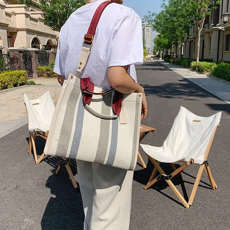 Elevate your everyday style with the BXWJ Canvas Stripe Tote Bag, a timeless and versatile handbag perfect for women on the go.